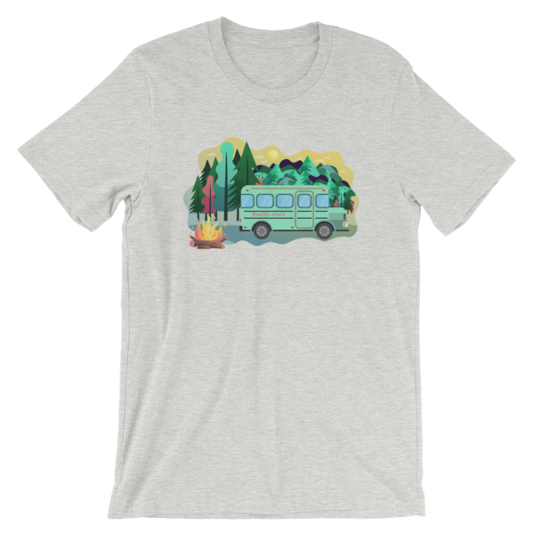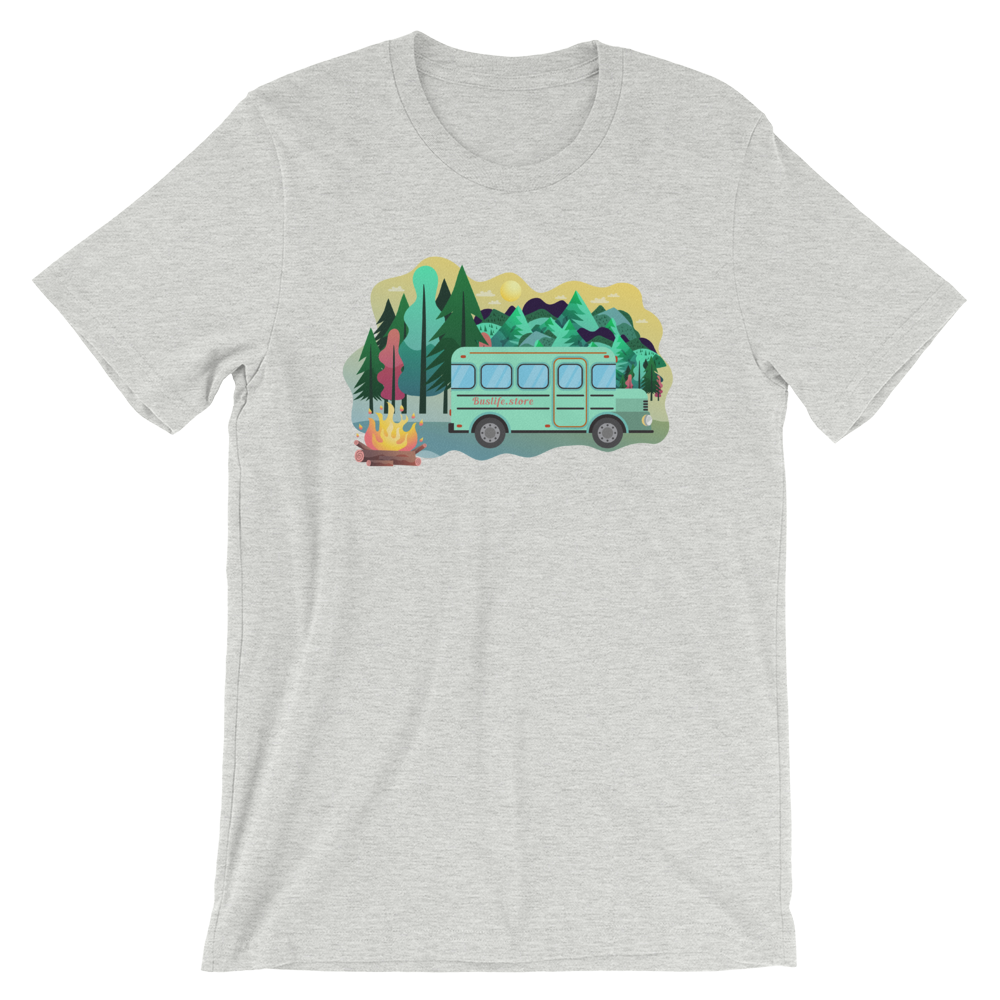 Skoolie in the forest.